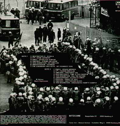 Emils - legale mörder / C3I - packen wir's an / Omicidio - finsterer tag / Destination Zero - time is too short / 100% Diskretion - kill the nature / Angeschissen - allein zu weit / Erosion - prince of hell / Omicidio - skeptischer blues / 100% Diskrtion - angesägtes humpty dumpty