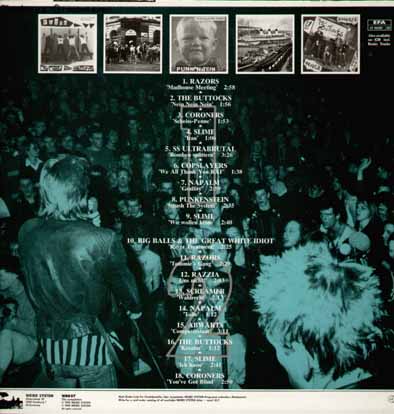 Razors - madhouse meeting / Buttocks - nein nein nein / Coroners - scheiss-penne / Slime - iran / SS Ultrabrutal - bomben splittern / Copslayers - we all thank you raf / Napalm - graffity / Punkenstein - smash the system / Slime - wir wollen keine bullenschweine